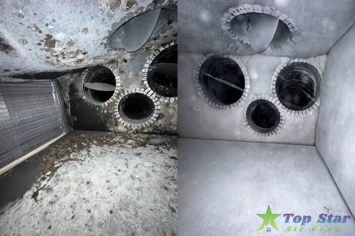 - Mold growth inside air ducts or plenum box